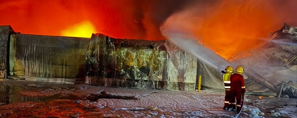 Emergency responders work to extinguish a fire at a chemical storage facility at the Burjisiya logistics hub in Basra on March 6, 2026.