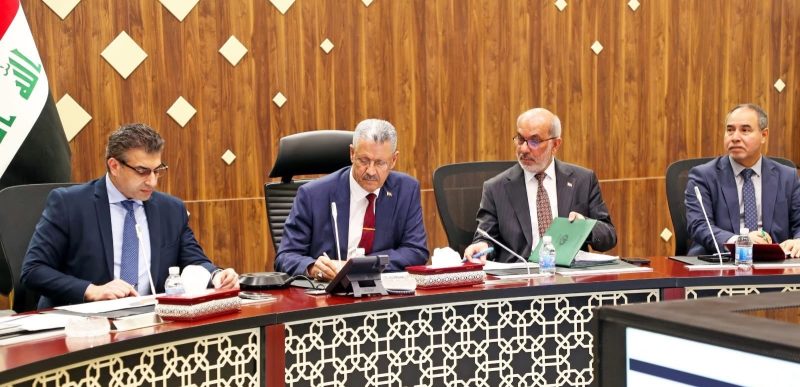 Oil Minister Hayyan Abdulghani (center left) and Deputy Oil Minister for Upstream Bassim Mohammed Khdair (center right) meet with Zaid Elyaseri (far left), the president of BP Iraq, in Baghdad on Jan. 26, 2026, to discuss the company's upstream plans and project expenses. (Photo credit: Oil Ministry)