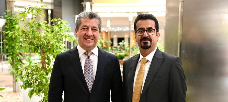 Shwan Mohammed Kalari (right), rapporteur of the Kurdistan Democratic Party delegation to the federal Iraqi Parliament, stands with Kurdistan Regional Government Prime Minister Masrour Barzani (left). (Photo credit: office of Shwan Mohammed Kalari)
