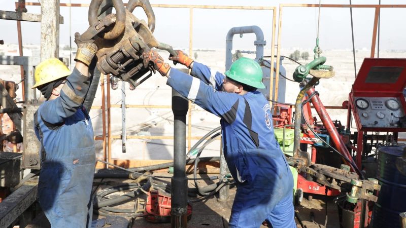Workers from the state-run Iraqi Drilling Company (IDC) operate a drilling rig at the Zubair oil field in April 2026. (Photo credit: IDC)
